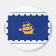 Magnet med flagga Quebec City, huvudstaden Quebec, Kanada. En blå flagga med vit kontur och en gult frakt i mitten