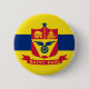 Round Button med flagga av St Paul, Minnesota; flagga med tre vågräna rand av blått och gult med rött emblem i mitten