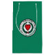 Papper påse med flagga av Worcester, Massachusetts, grönt flagga med vitt emblem med rött hjärta i mitten