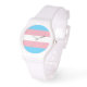 Flagga Transgender-Pridet skapades 1999 av en amerikansk transkvinna, Monica Helms, och visades först i pridet parad i Phoenix, Arizona, Förenade Stater 2000. Flagga representerar transgensamhället och består av fem vågrät rand: två ljusblå, två rosa och en vit i mitten. Rand överst och grund är ljusblå, det traditionella färg för pojke. Rand bredvid dem är rosa, det traditionella färg för flicka. Rand i mitten är vitt, för dem som övergår eller anser sig ha en neutralt eller en odefinierad gender.