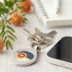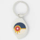 Nyckelkedja med design med flagga Tulsa, Oklahoma. En beige och marin blå flagga med en guld Osage-sköld som innehåller en röd cirkel och en beige sexuddig stjärna