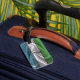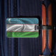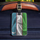 Bagagemärke med flagga Uzbekistan i utformningen av det vågigt tyget stil. Denna formgivning har den uzbekiska flagga färg och är utformad med ett vackert material som texturerats. Denna utformning av flagga är ett underbart sätt att visa att man är stolt över att vara från Uzbekistan.