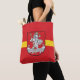 Tote-väskan med utformning med flagga av Vilnius, huvudstad i Litauen; röd flagga med gult rand och jackar av arm med två gyllene lejon som håller en sköld i mitten