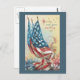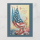"Men hans själ marscherar vidare." Tre amerikanska flaggor och stiliserade "Glöm-mig-inte-blommor" för de fallna. Ett vykort för minnesdagen i vintagen från 1908.