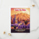 Flagstaff spara datum bröllopsinbjudan, resebrevkort. Stadssiluett och berget bakom.