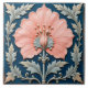 En kvadratisk ruta med en rosa blomma i mitten, omgiven av silver löv, på mörk blått bakgrund, symmetrisk komposition, komplicerade detaljer, vintage stil, dekorativ konst.