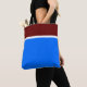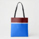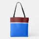 Den här eleganta chicen har en djup röd, bred överkant kant rand, skisserad i vitt, ovanför ett pulserande blått färg-block som fyller resten av designen.