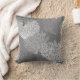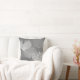 Dekorativ kudde i ett undervattens- mönster av överlappande fläktkorall skuggar in av ljust silver till djupa grafitgrått/grå färg med vit på en medelgråttbakgrund