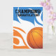 Ge ett grattis kort för laget som vann basketmästerskapen. En basketform med vita flammor runt boll med blått och orange. Perfekt för anhängare och fläkt av basketslag som har blått och orange som sitt huvudsakliga färg. Underbar även för klubb troféer. Anpassa med din egen text så att den blir ett unikt kort för grattisar.