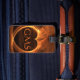 Flamande Orange Hjärtkontur över svart ID Bagagebricka