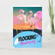 Flamazande roligt hälsningskort för Tack med flamingor runt vatten hål med ett solnedgång himlar. Anpassa text på omslaget och inuti kortet. Art. Image, och verse copyright © Shoaff Ballanger Studios, 2022.
