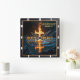 Flame Cross Water Reflection Spirit Matthew 3:11 Fyrkantig Klocka