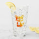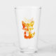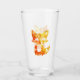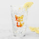 En dekorativ design av en liten söt räv med orange och gult färg på silhuetten tittar som lågor på ett glas.