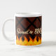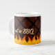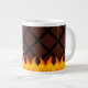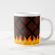 Flamkyssade, orange och gult flammar vid grund, brun bakgrund med svarta grillmärken.
