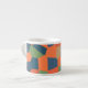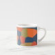 En öga-mugg som fångar Espressos-kaffe, med en abstrakt mönster i vibrerande färg - Flamande Orange, Midnight Blue and Deep-Grönt, från en digital design av Judy Adamson.