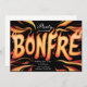 En digital illustration av Bonfire Flames-Studentfesten Bjud in A Fiery ord art design som beskriver ord-brasan i fet, orange brev omgiven av lågor.