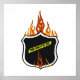 Flamtatuering omger polismannens bricka symbolisk för tillsatta lagar och skyddas av gultens brottsplatsband.