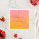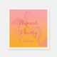 Denna tropiska pappra napkin har två mycket ljusa flamingo-silhuetter på en ljus rosa och orange övertoningsbakgrund. Det finns också textområden för anpassadet för det par som är gifta sig och för datumet för evenemanget.