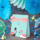 Flamingomaterade bröllopsboxar med en flamingobrid och flamingogroom på turkobakgrunden. Lägg bara till lådorna i din vagn och njut av din flamingofyllda bröllop. Flamingo Bride Groom Bröllopsfack för sommartid | ©Melissa Patton - Designer/Illustrator