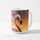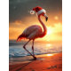 "This stunning, unique illustration captures the spirit of a tropical Christmas. A beautiful pink flamingo stands elegantly on the beach at sunset, dressed up with a classic Santa hat. The scene combines the warmth of the tropics with festive cheer, complete with light snowfall. This graphic is perfect for holiday cards for those who prefer warm weather, Hawaiian or Florida-themed Christmas products, mugs, t-shirts, and beach-themed Christmas decorations."