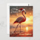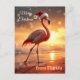 "This stunning, unique illustration captures the spirit of a tropical Christmas. A beautiful pink flamingo stands elegantly on the beach at sunset, dressed up with a classic Santa hat. The scene combines the warmth of the tropics with festive cheer, complete with light snowfall. This graphic is perfect for holiday cards for those who prefer warm weather, Hawaiian or Florida-themed Christmas products, mugs, t-shirts, and beach-themed Christmas decorations."