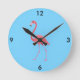 Den här rundformens väggklocka visas med en söt rosa flamingografisk utskrift. Medium-Storlek som visas Anpassa det här objektet eller köp som det är. Bild från lagrar