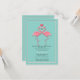 En söt polka-prickad inbjudan med ett par rosa flamingos, näsa till näsa, med ett hjärta mellan dem. Bra lämpad för förlovningar, spara datum meddelande, bröllop, efterlysning och efterhandsinbjudningar till bröllop brunch med mera.