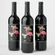 Flamingo Drinking Margarita Funny Mexican Poncho Vinflaska Etikett