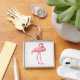Flamingo Fyrkantig Silverfärgad Nyckelring