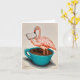 A flamingo soaks feet while reading a book - and hopes to get well soon. The original art was handmade by Sue Clancy using ink and gouache.