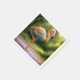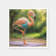 En flamingo står på ett snyggt sätt på ena benet vid ett yogamat och bär små benvärmare mot en vibrerande grönt-bakgrund