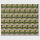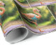 En flamingo står på ett snyggt sätt på ena benet vid ett yogamat och bär små benvärmare mot en vibrerande grönt-bakgrund