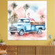 Flamingo in Blue Retro Lastbil Canvastryck