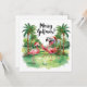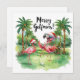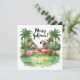 Fira helgdagarna med en lek på golf! Det här vattenfärgkortet har en rosa flamingo klädd som golfer, med en julhatt, på en lush grönt golfbana som dekoreras för jul. Rökvägarna är adormerade med flamingo, och helgdag på handflatan träd skapar en roligt och en festlig scen. Den handskrivna texten "God jul" ger ett glatt drag. Perfekt för golfentusiaster, Florida fläkt, eller någon som i kärlek formar vismisk helgdag.