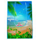 Flamingo Kärlek är min romantiska drömstrandskonst med alla mina favoriter inslag, Handflatan träd, delfiner, fiskmåsar, segelbåt, stjärnfisk och naturligtvis två flamingor som riktas mot varandra för att forma berömdens rosa hjärtform.