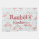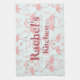 Den här "Flamingo Kärlek"-kökshanddukens visningar parar rosa flamingos på en mjuk blå bakgrund. Deras huvuden böjs för att likna ett hjärta. Det finns rosa fjädrar som lägger till mönstret. Anpassa ditt namn idag! Bild skapat av: AMBillustrations http://www.etsy.com/shop/AMBillustrations/