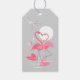 Ett par rosa flamingos med nacke böjd för att bilda en hjärtform i havet på en månbelyst strand. En snyggt, romantisk design med en reflekterande beröring skapat i ett rosa-, grått- och vitt färg-schema med färg-förändringsbakgrund. Ett anpassade som du kan anpassa med egen text, bilder och egna idéer. En originalbild av digitala konster.