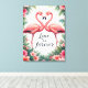 Förgyll alla utrymmen med detta fantastiska flamingoflamingo-konstverk! Med två eleganta flamingor som bildar en hjärtform, omgivna av frodiga tropiska blad och mjuka rosa nyanser, utstrålar denna design romantik och stillhet. Frasen "Love Forever" tillför en sentimental touch, vilket gör det till ett underbart val för årsdagar, bröllop eller alla hjärtans dag-present. Perfekt för flamingo-älskare, tropiskt tema-dekor eller någon som uppskattar naturens skönhet i en romantisk miljö.