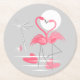 Ett par rosa flamingos med nacke böjd för att bilda en hjärtform i havet på en månbelyst strand. En snyggt, romantisk design med en reflekterande beröring skapat i ett rosa-, grått- och vitt färg-schema med färg-förändringsbakgrund. Ett anpassade som du kan anpassa med egen text, bilder och egna idéer. En originalbild av digitala konster.