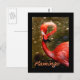 En flamingo med huvudet böjt neråt stående i vattnet. Text i rosa som säger "Flamingo" finns i det nedre vänstra hörnet. Bra design för alla som älskar flamingos!