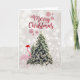 Flamingo med tomtehatt, tallar, glitterbokeh helgkort