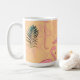 Flamingo Mugg i guldfärgad gul och rosa med turkosa blad. Tack till Hungryjpeg och Creative Fabrica för några av elementen i designen.