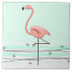Mid-sekels inspirerade design med en återpekande med en rosa flamingos som står i vatten mot en blek akvaribakgrund i grönten. Ett anpassade som du kan anpassa med egen text, bilder och egna idéer. En originalbild för digital konst skapat av Jess Perry på QuirkyChic Retro.
