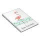 Mid-sekels inspirerade design med en återpekande med en rosa flamingo som står i aqua vatten mot en vit bakgrund. Ett anpassade som du kan anpassa med egen text, bilder och egna idéer. En originalbild för digital konst skapat av Jess Perry på QuirkyChic Retro.