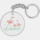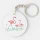 Mid-sekels inspirerade design med en återpekande med en grupp rosa flamingos som står i aqua vatten mot en vit bakgrund. Ett anpassade som du kan anpassa med egen text, bilder och egna idéer. En originalbild för digital konst skapat av Jess Perry på QuirkyChic Retro.