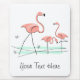 Mid-sekels inspirerade design med en återpekande med en grupp rosa flamingos som står i aqua vatten mot en vit bakgrund. Ett anpassade som du kan anpassa med egen text, bilder och egna idéer. En originalbild för digital konst skapat av Jess Perry på QuirkyChic Retro.