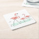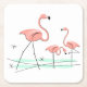 Mid-sekels inspirerade design med en återpekande med en grupp rosa flamingos som står i aqua vatten mot en vit bakgrund. Ett anpassade som du kan anpassa med egen text, bilder och egna idéer. En originalbild för digital konst skapat av Jess Perry på QuirkyChic Retro.