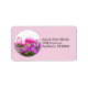 Söt Rosa Flamingo med Blommor på blekrosa bakgrundsadressetikett med originalkonst med en för dina etikettbehov. Originalkonst copyright Ann Powell alla rättigheter förbehållna.