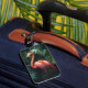 En pulserande design med en flamingo kapslad bland lush jungle löv.