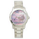 Fantastisk vilt. Rosa flamingo, hav, rosa himlar och tropisk strand.